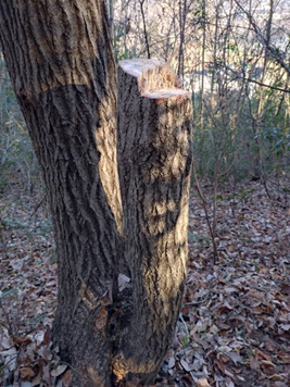 樹種を間違う、手ノコで伐り倒したが掛かり木に四苦八苦、道路まで汗だくで引きずり下ろした。