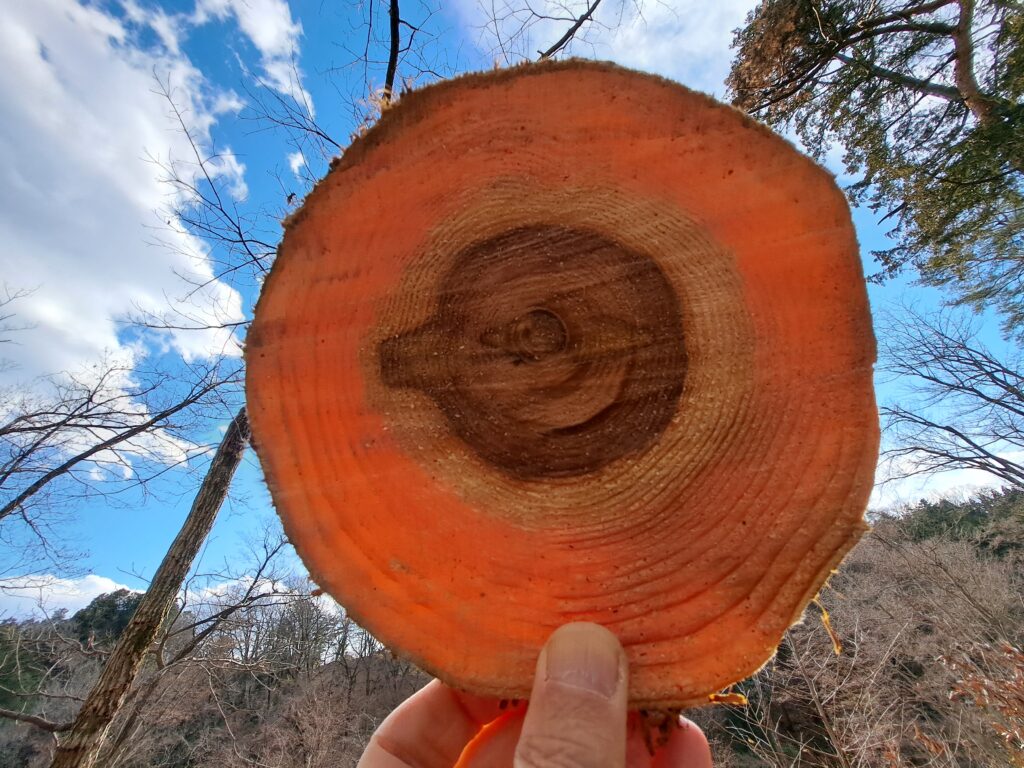 杉の木を薄くスライスして太陽に透かして見たら、手のひらを太陽に透かして見た時のように赤い色に見えたんです。