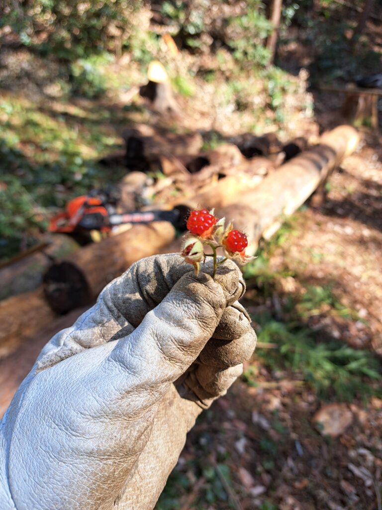 冬イチゴが自分の足元に美味しそうな実を付けていることに今年はじめて気が付いたんです。